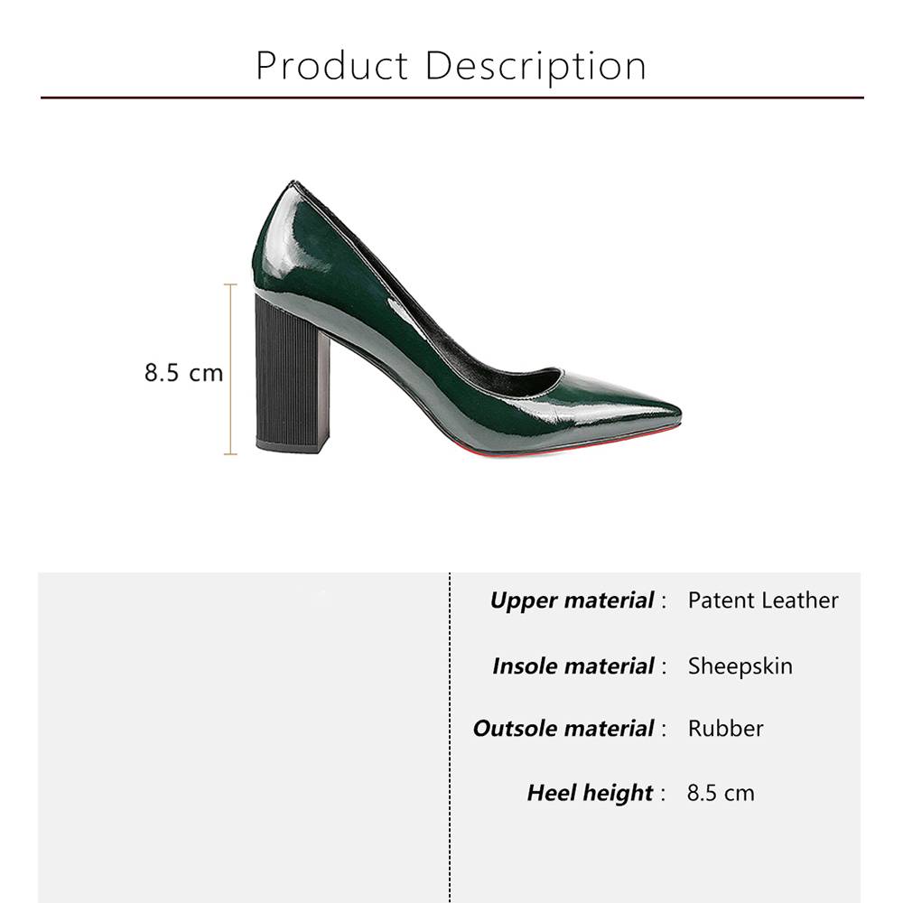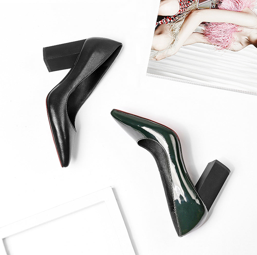 Elegant Patent Leather Pointed Toe Square Heels Pump Shoes