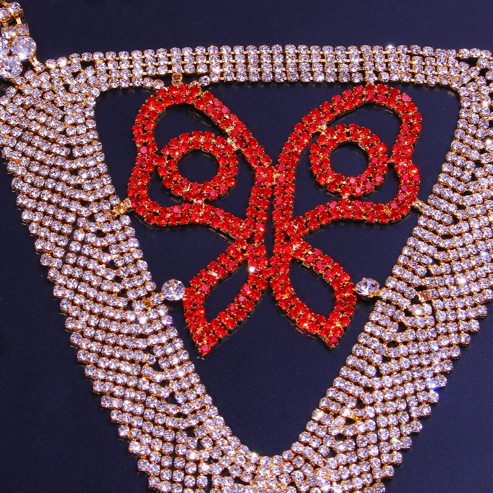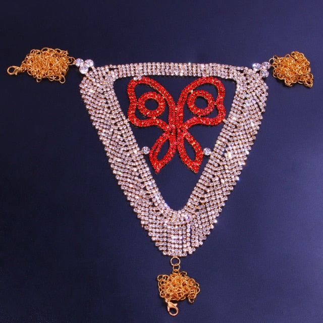 Beautiful butterflies and geometric patterns decorate this set of body jewelry. It is made from rhinestone and copper material. It has a clasp closure for easy to attach and detach.