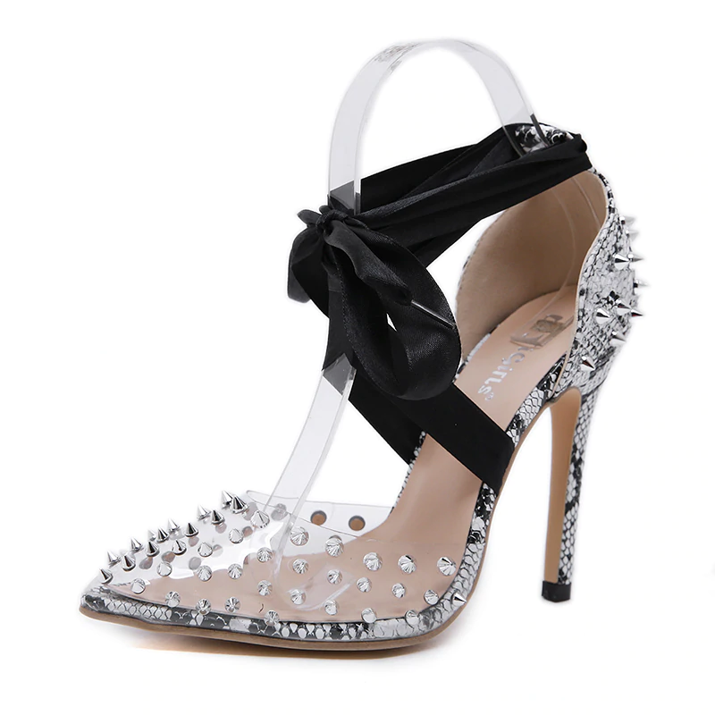 Sexy Snake Pattern Ankle Straps Transparent Rivet Women's Sandals