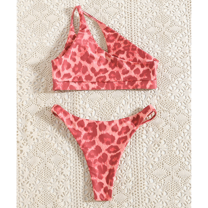 Leopard Patterned One-Shoulder Bikini with Polyester Spandex Material