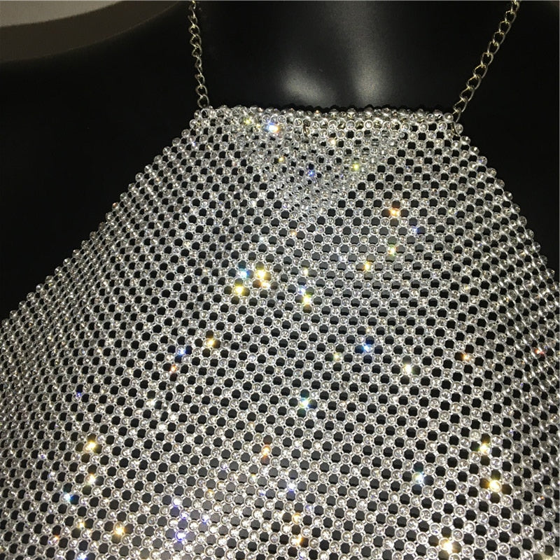 Halter Camisole Top with Sequin and Chain Strap