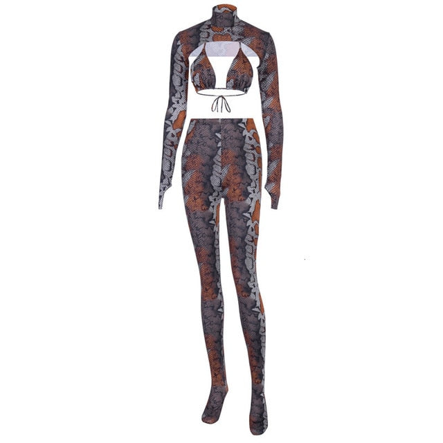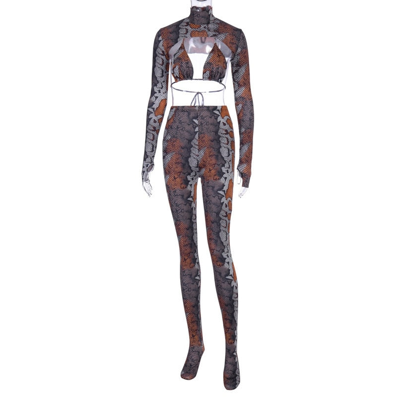 Spandex Turtleneck Elastic Waist Print Pattern Full Sleeve Pant Sets