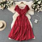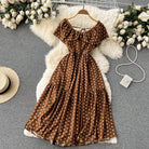 This midi dress is a true fashion staple for any woman's wardrobe. Its A-line silhouette and polyester fabric gives it a comfortable, modern feel. The polyester is easy to wash and wears well over time. The polka dot pattern adds a playful touch to any outfit. This dress is the perfect way to add a little fun to your wardrobe.