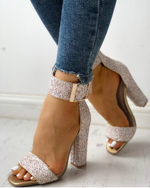 Full Glitter Cloth Style Microfiber Closed Heeled Pump Sandal with Ankle Buckle Strap
