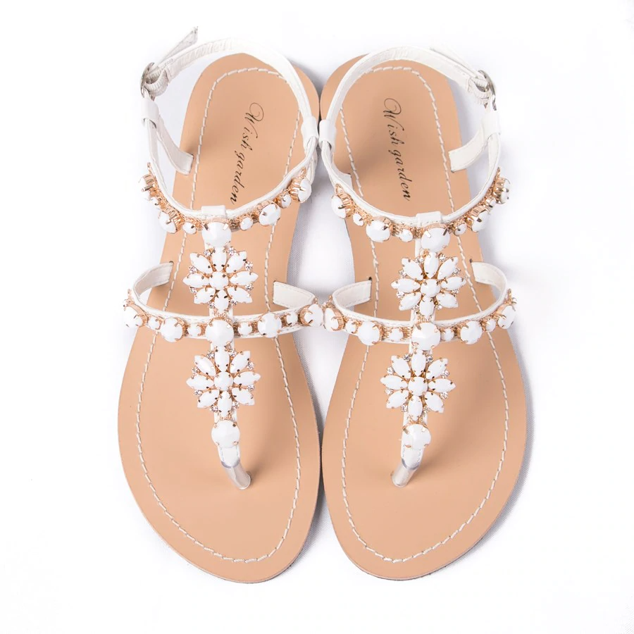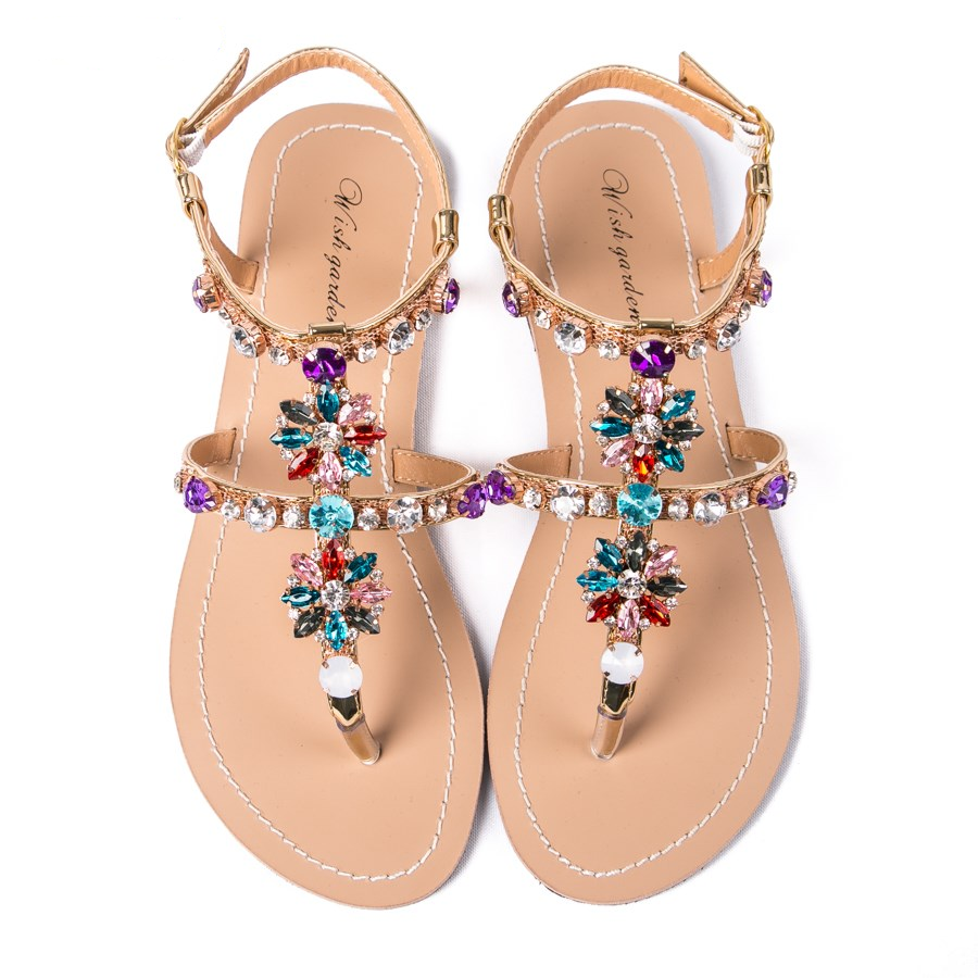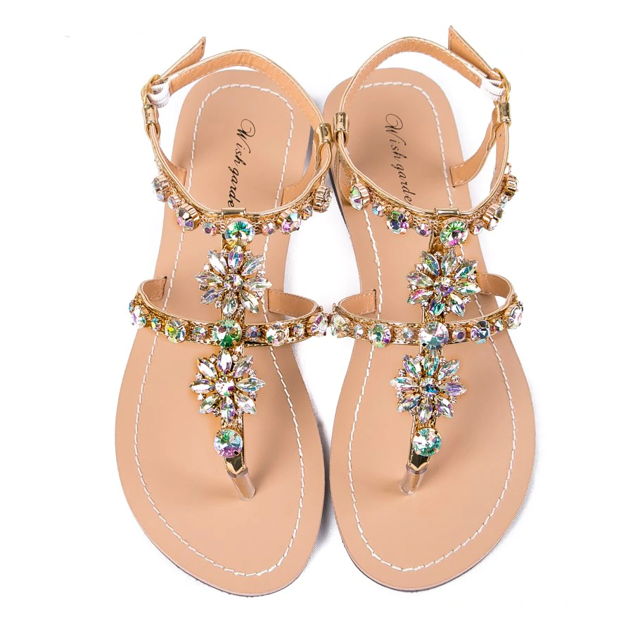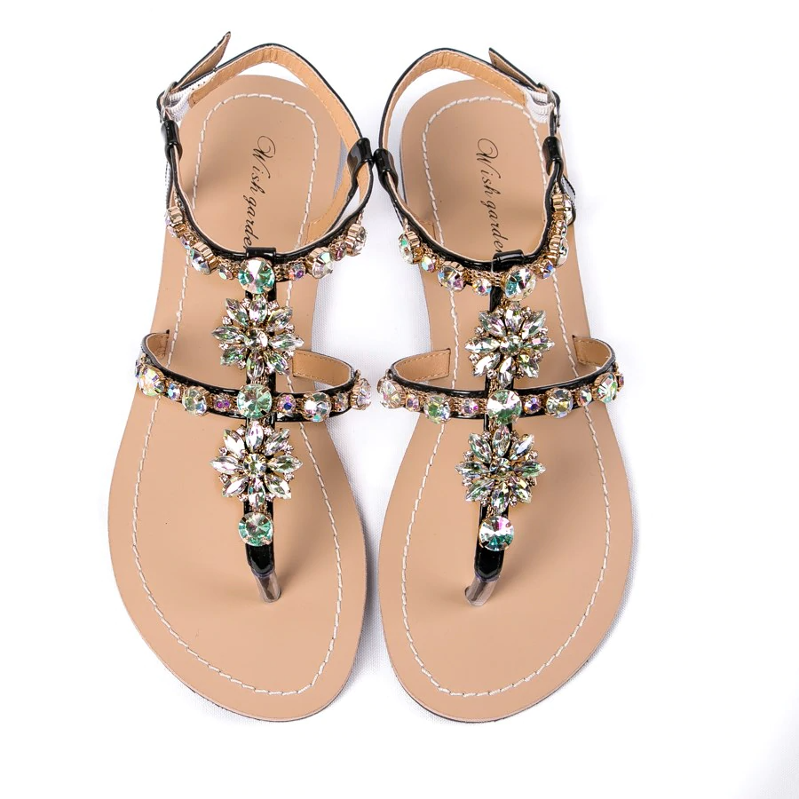 Shinning Rhinestone T-Strap Strap Flat Sandal
