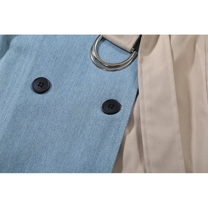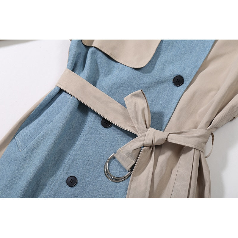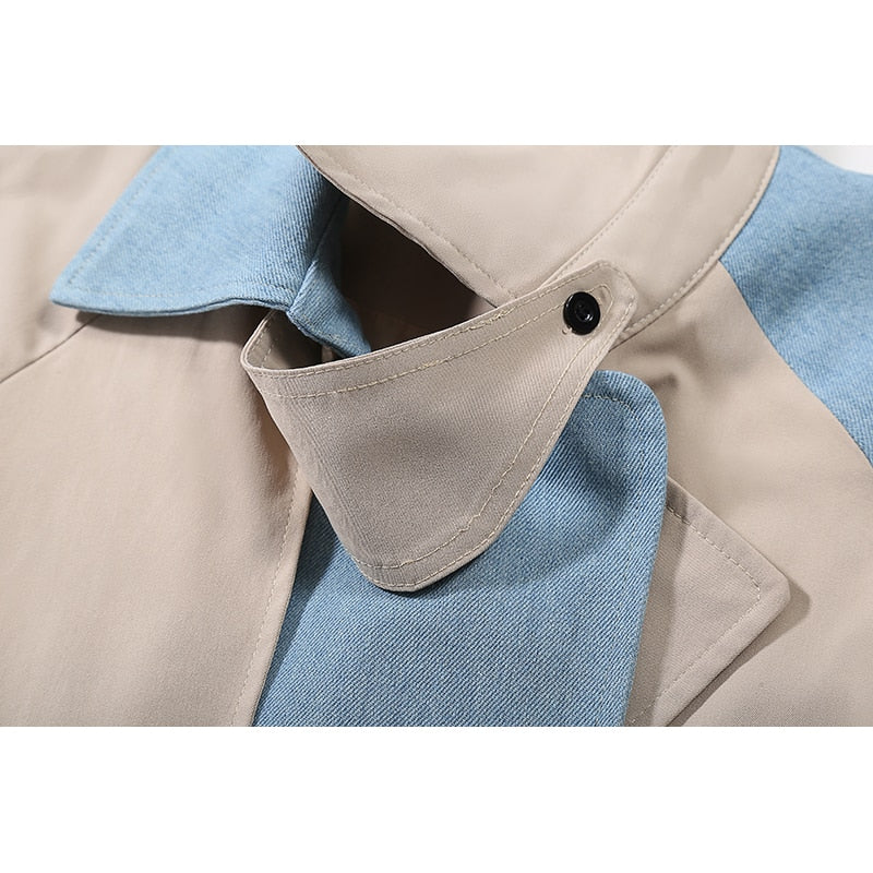 Turn-Down Collared Trench Coat with Double-Breasted Closure, Cotton Material, and Broadcloth Fabric Type