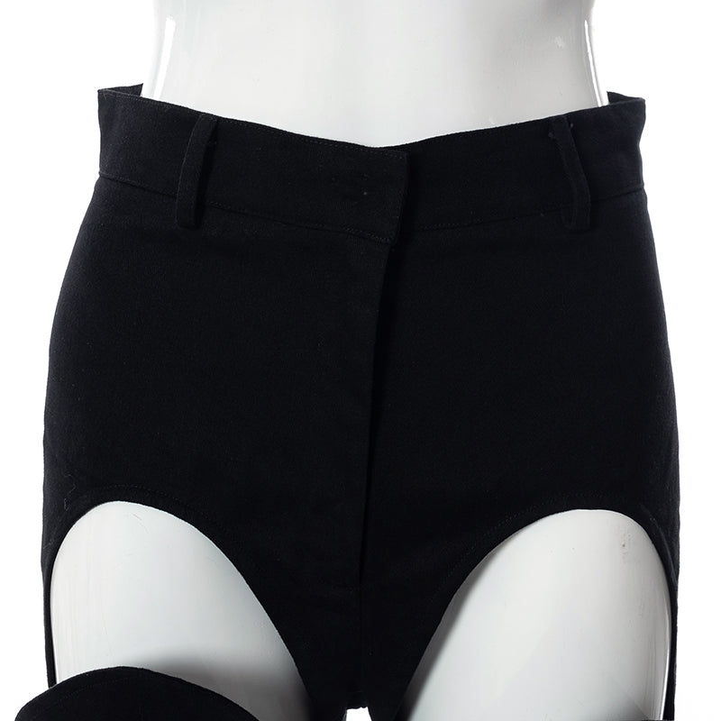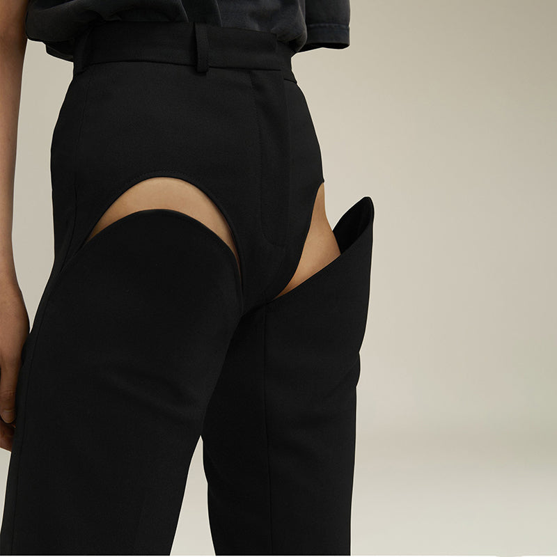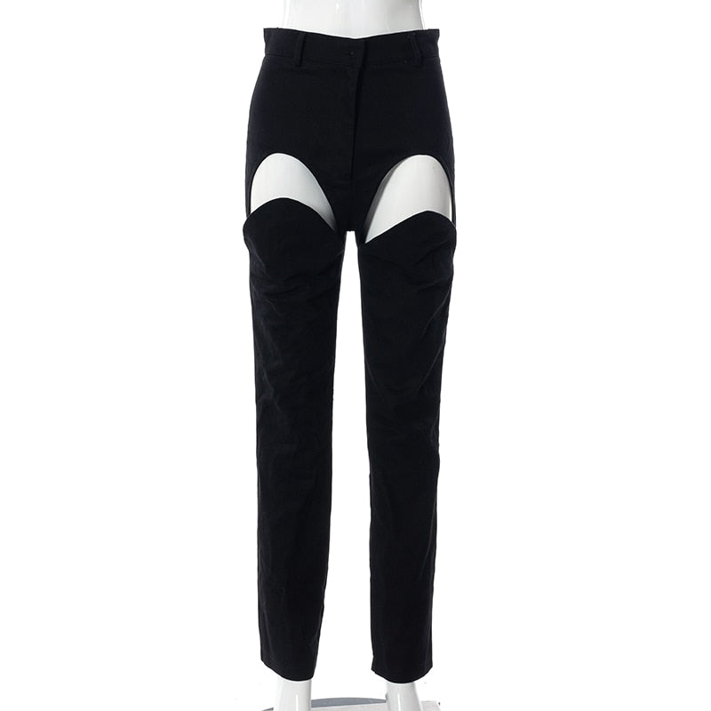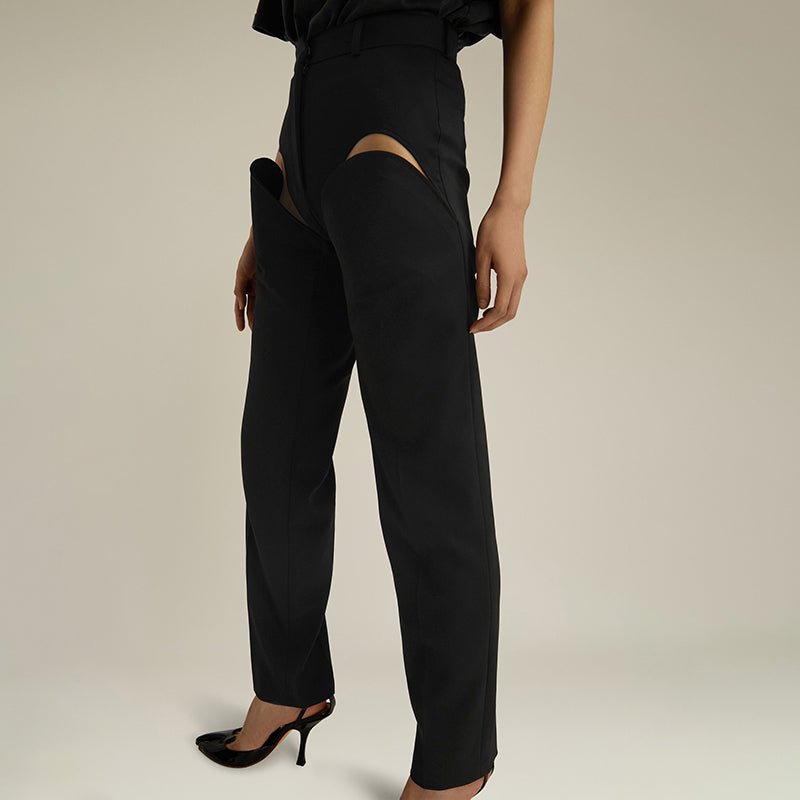 This pair of jeans has the cut-out detail in the front which gives it a stylish look. The zipper fly closure makes it easy to put on and take off. They are mid-waisted with a straight leg.