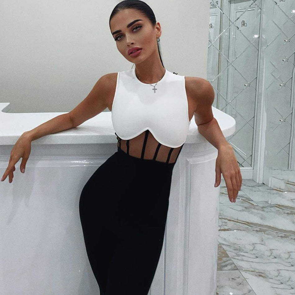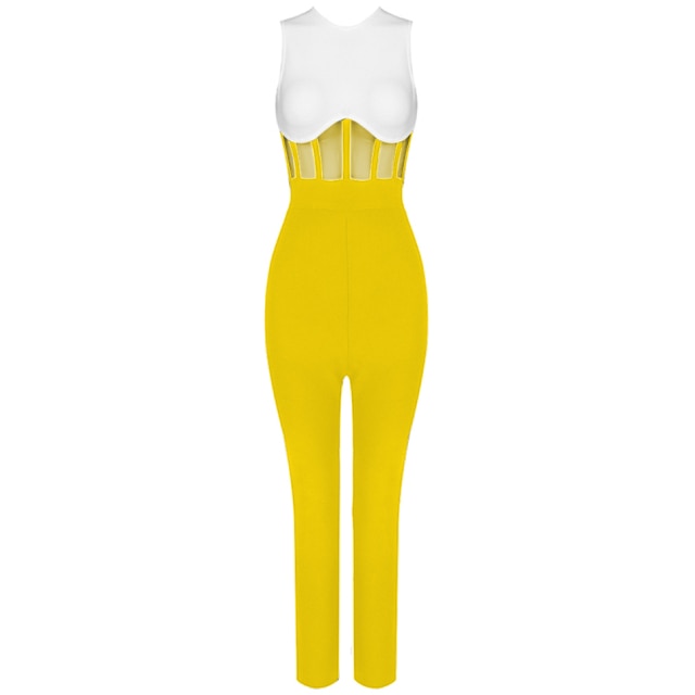 Solid Sleeveless Nylon Rayon Spandex Jumpsuit with See-Through Waist Style