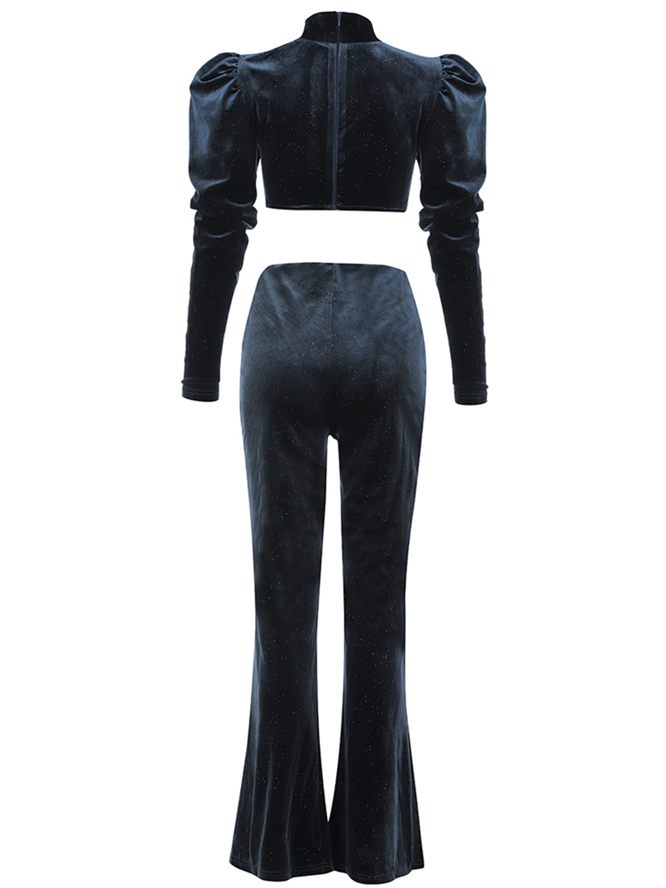This jumpsuit is made of velvet polyester and spandex material which makes it soft and comfortable. It has a long sleeve style with shoulder puff which gives it an informal look. It has an elegant stand collar and features a hollow-out waist style. It has wide-leg pants which give you a comfortable fit. This trending jumpsuit is perfect for daytime leisure.