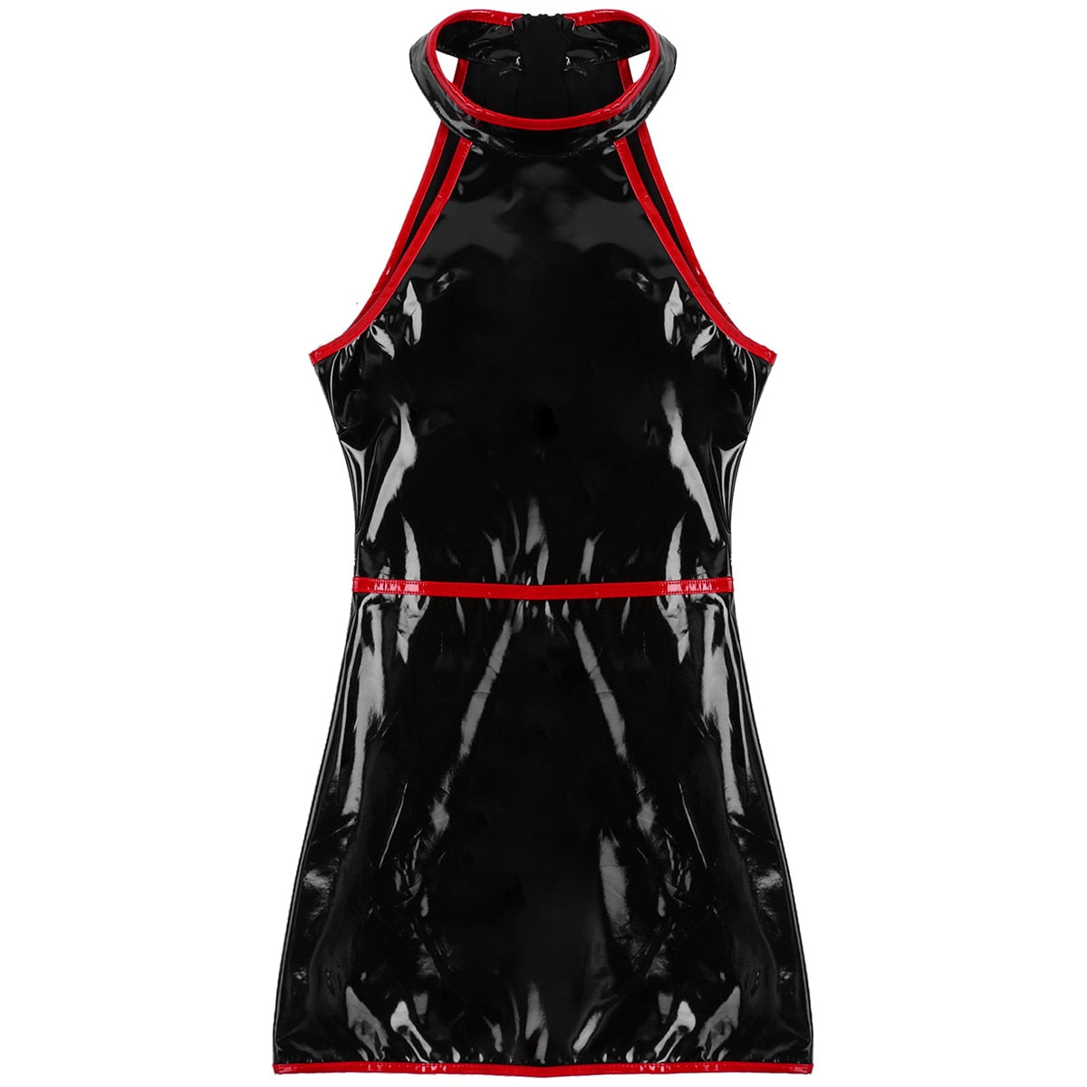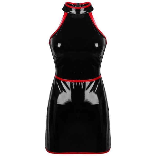 Sleeveless Bandage Mini Dress with Zipper Closure and Synthetic Leather Material