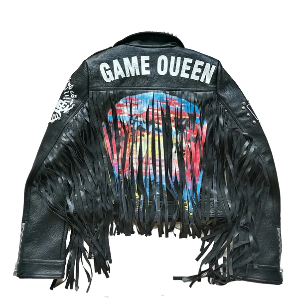 PU Leather on Turn-down Collar Zipper Women Jacket