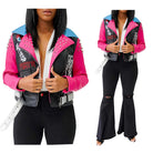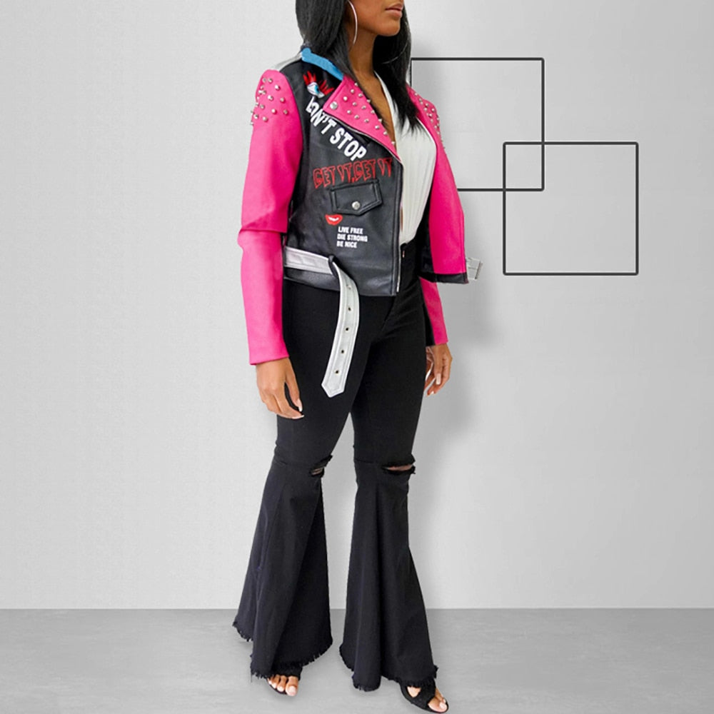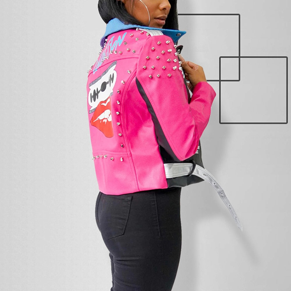 Polyester on Turn-down Fuschia Open Stitch Jacket