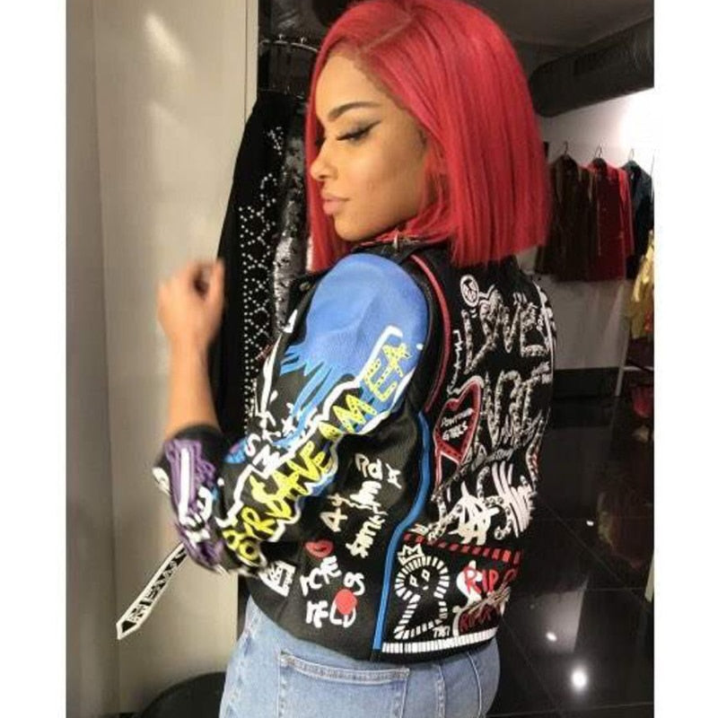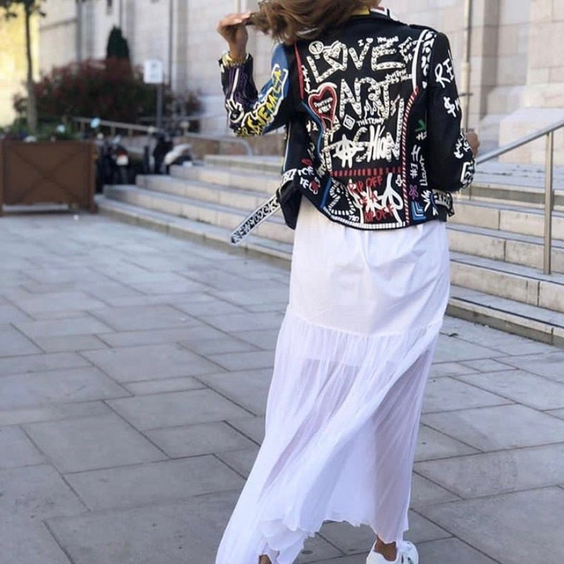 PU Leather on Turn-down Collar Slim Zipper Women Jacket