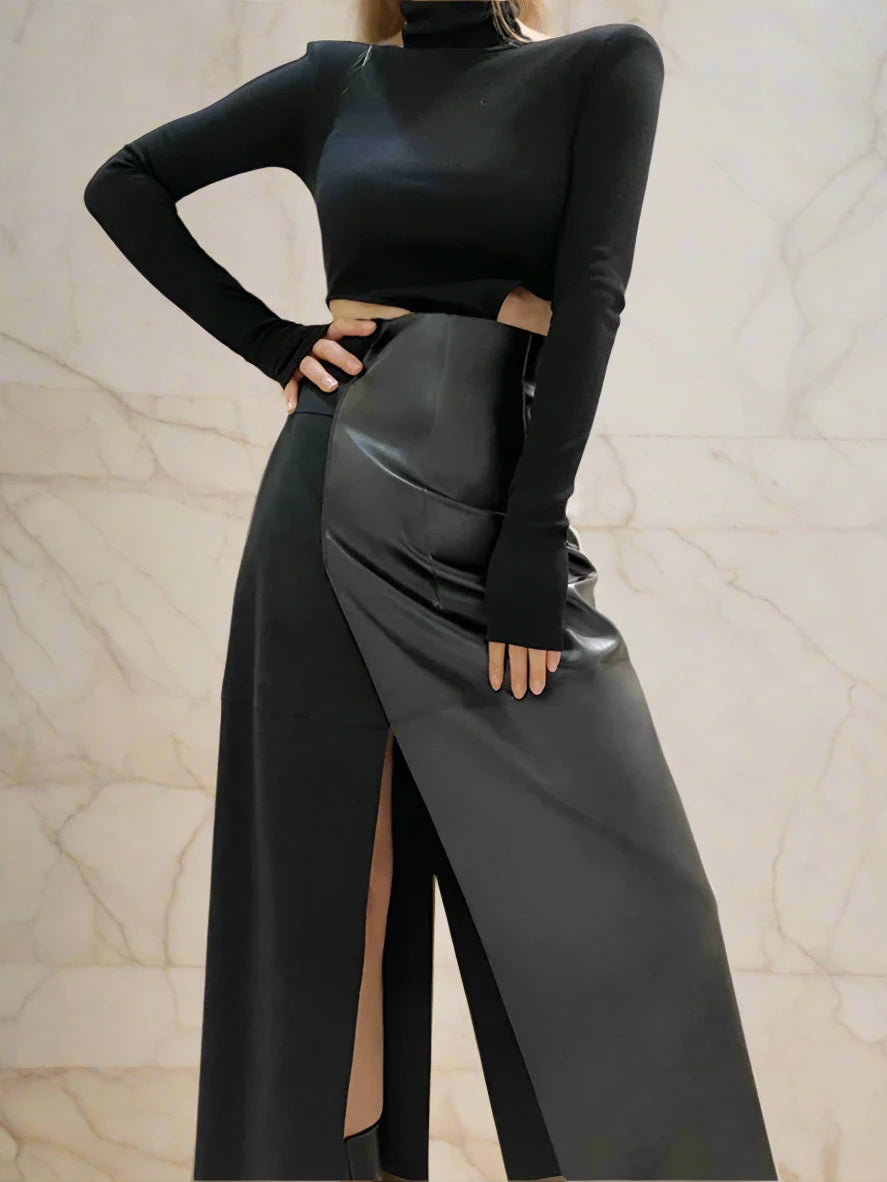 Elevate your style with the Tracing The Wind Midi Skirt. Crafted with faux leather material, it offers a slight stretch for a comfortable fit. The empire waistline and mid-calf length add a touch of sophistication, while the solid pattern and regular fit will flatter any figure. Revamp your wardrobe today!