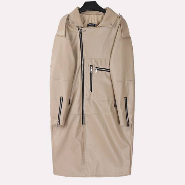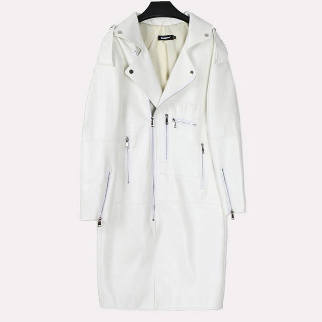 PU Leather Suede Turned Down Collar Dropped Shoulder Zippered Long Coat
