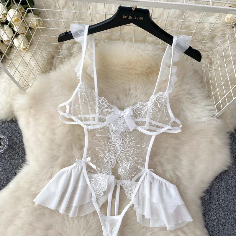 Unleash your inner seductress with our A Little Too Strong Crotchless Teddies! Adorned with a bow, this sexy and club-worthy lingerie is made of lightweight and stretchable mesh material for a comfortable fit. The beautiful floral pattern adds a touch of elegance. Made with nylon and spandex for a perfect combination of style and comfort.