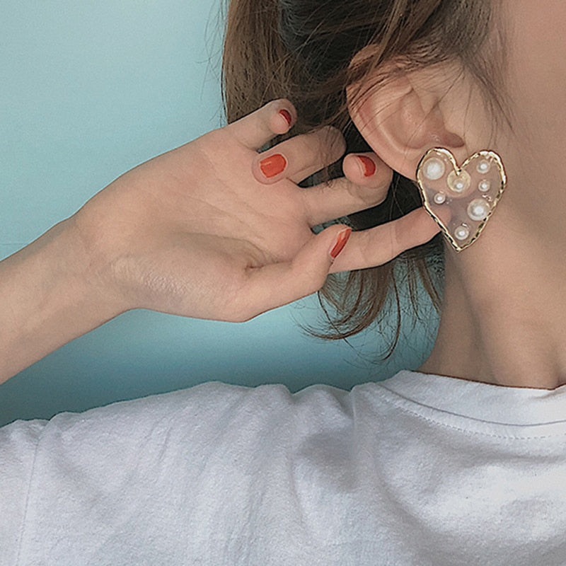 Heart-Shaped Zinc Alloy Drop Earrings with Simulated Pearls