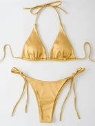 Dive into confidence with the Luminous Joy Bikini. This daring two-piece features a flattering halter neckline that accentuates your shoulders, crafted from a comfortable blend of polyester and spandex for a perfect, flexible fit. Whether you're making waves or soaking up the sun, this bikini ensures you stand out with bold style and effortless shape.