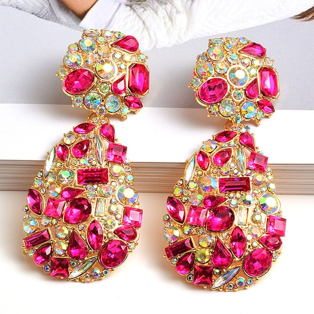Colorful Rhinestone Drop Dangle Earring with Zinc Alloy Material