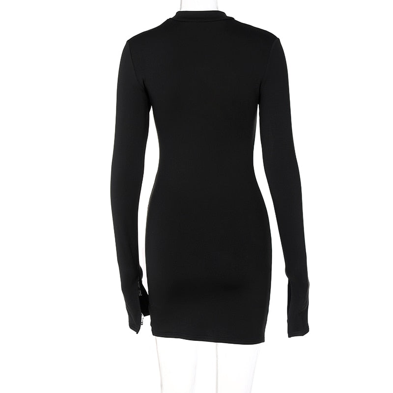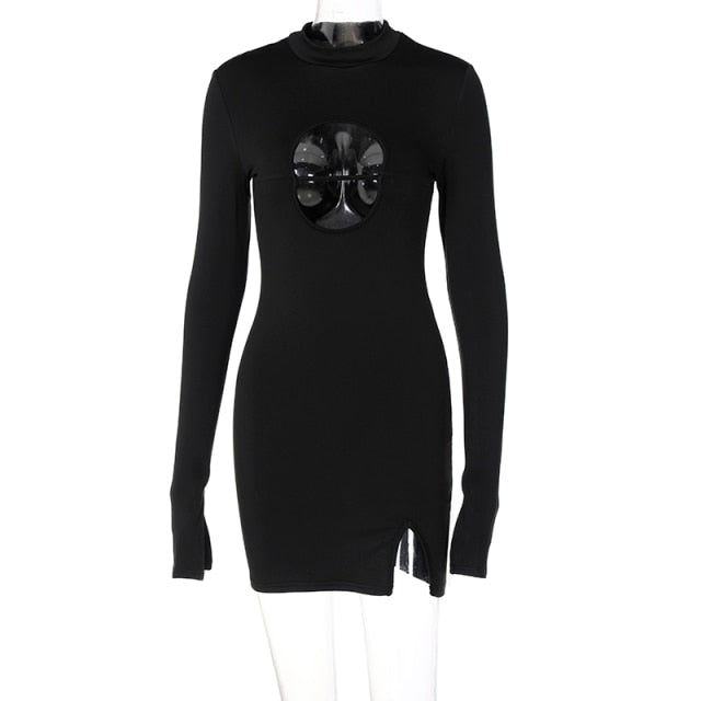 Look effortlessly chic in this season's hottest look. This long sleeve mini dress is the perfect way to show off your style. Pair it with your favorite accessories for a complete look. This stylish and subtle look is perfect for summer days that are filled with fun and adventure. The open stand collar is ideal for a comfortable and easy style. The delicate hollow-out design adds beauty and sophistication.
