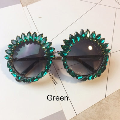 Alloy Frame Anti-Reflective Lens Round Sunglasses with Rhinestone Decoration
