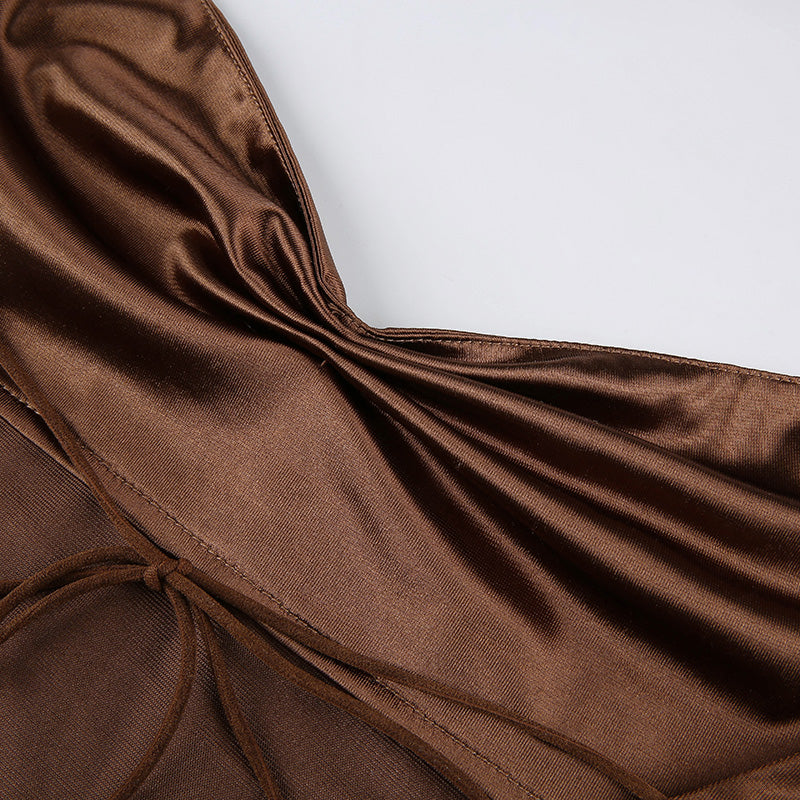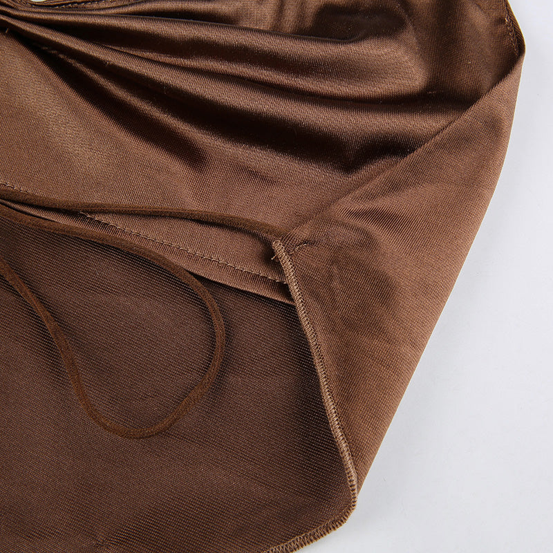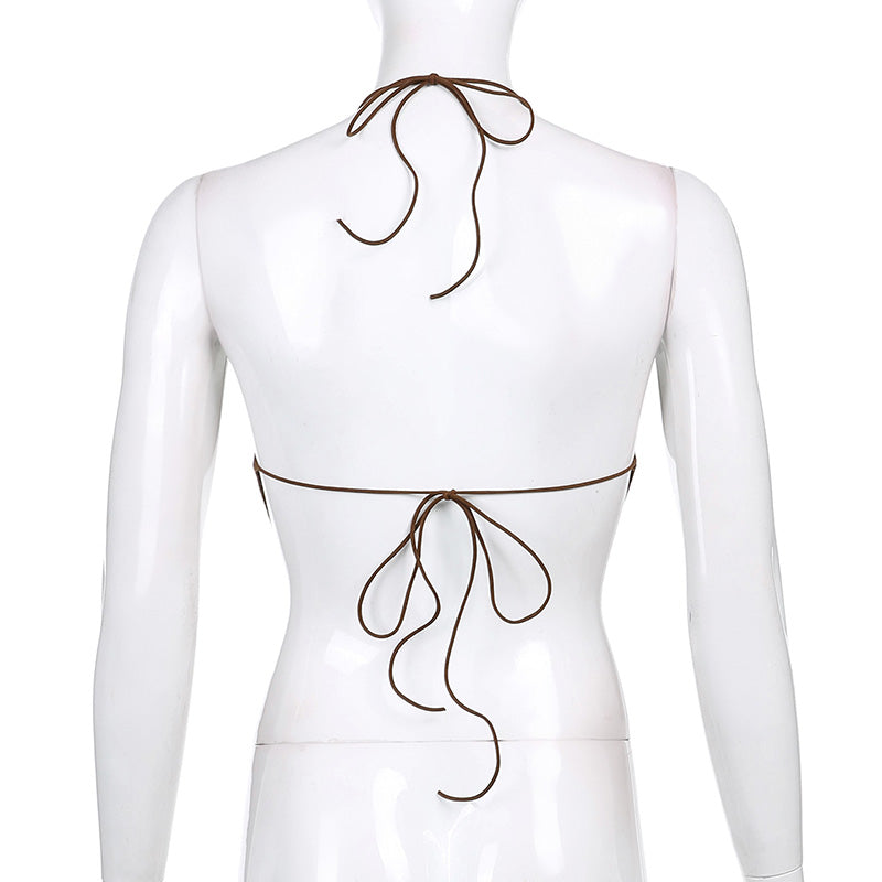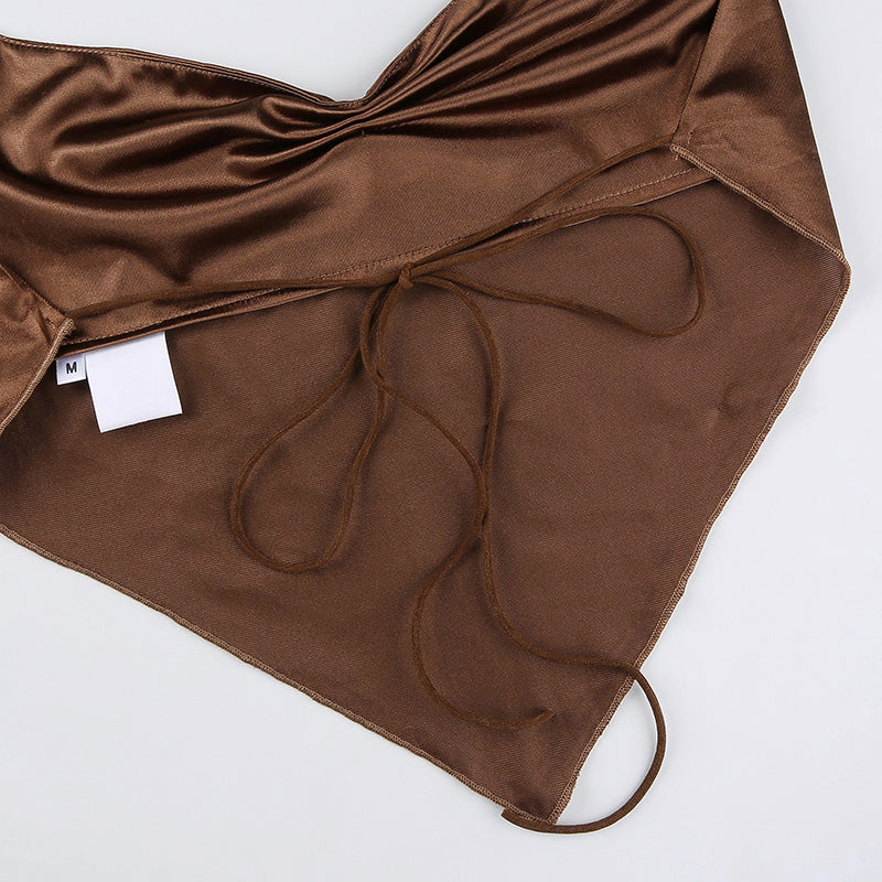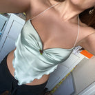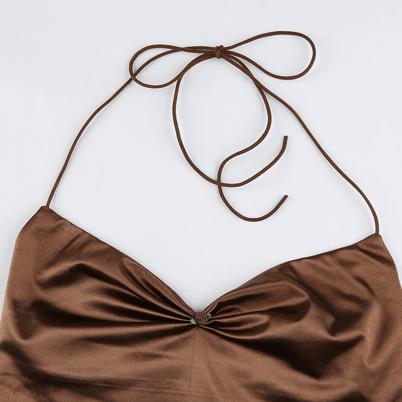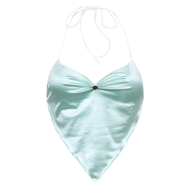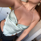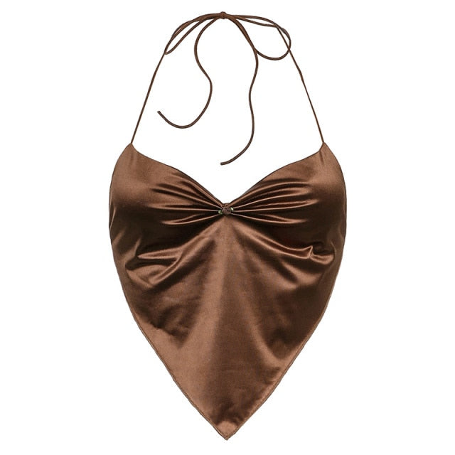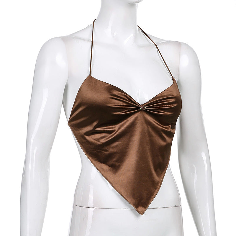 Solid Sleeveless Polyester Spandex Satin Camisole Top with Halter Style
