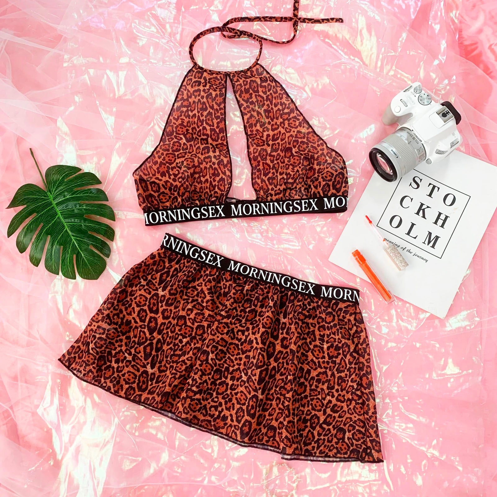 This mini skirt and top set is the perfect way to update your casual look for the summer. The elastic band and halter top create a cute and comfortable fit. The sexy leopard pattern has a unique look that looks fabulous