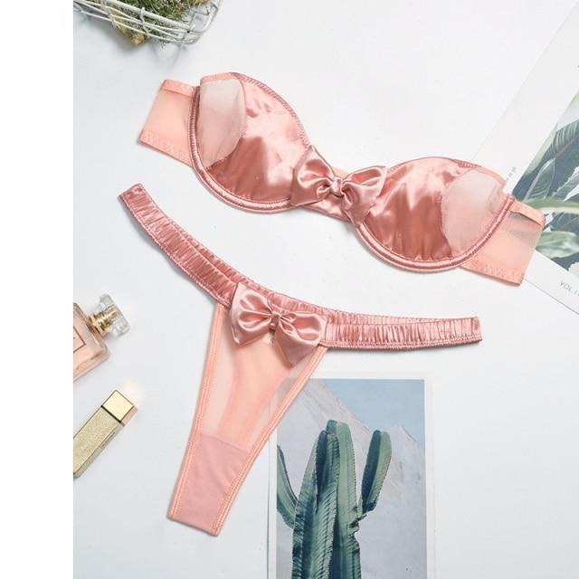 This cute and fashionable bra set comes in a set of 2. Each set features a comfortable, touch of see-through bra in a flattering shade of pink. The soft and stretchy materials are designed to fit comfortably, while the matching color and texture ensure they look perfect together.