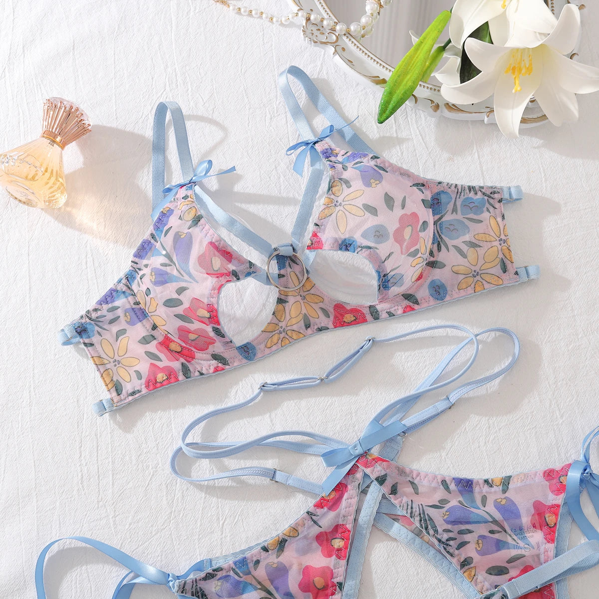 Turn up the heat with this fearless floral lingerie that blends delicate beauty with raw sensuality. Constructed from premium polyester, it delivers a sleek, luxurious feel that moves with your body. The striking floral pattern adds an unexpected edge—romantic yet rebellious, soft yet provocative. This piece celebrates the contradiction of being both elegant and daring, designed for those who refuse to choose between sophistication and seduction.