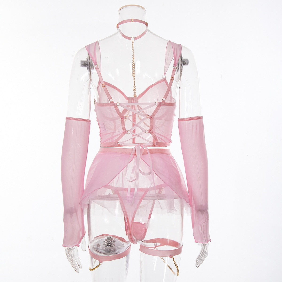 Capture The Moment Tonight with this feminine lingerie set. Crafted from luxurious linen, the delicate solid pink hue adds a romantic and timeless appeal. Look and feel beautiful on this special night.