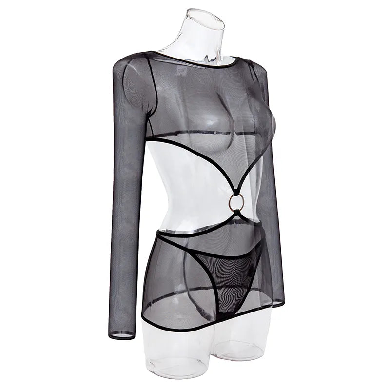 Sleek and sophisticated, this lingerie set is a must-have for any lingerie enthusiast. Crafted from a linen blend fabric, this lingerie set provides a soft and comfortable fit. With its solid design, this lingerie set is perfect for a romantic night.