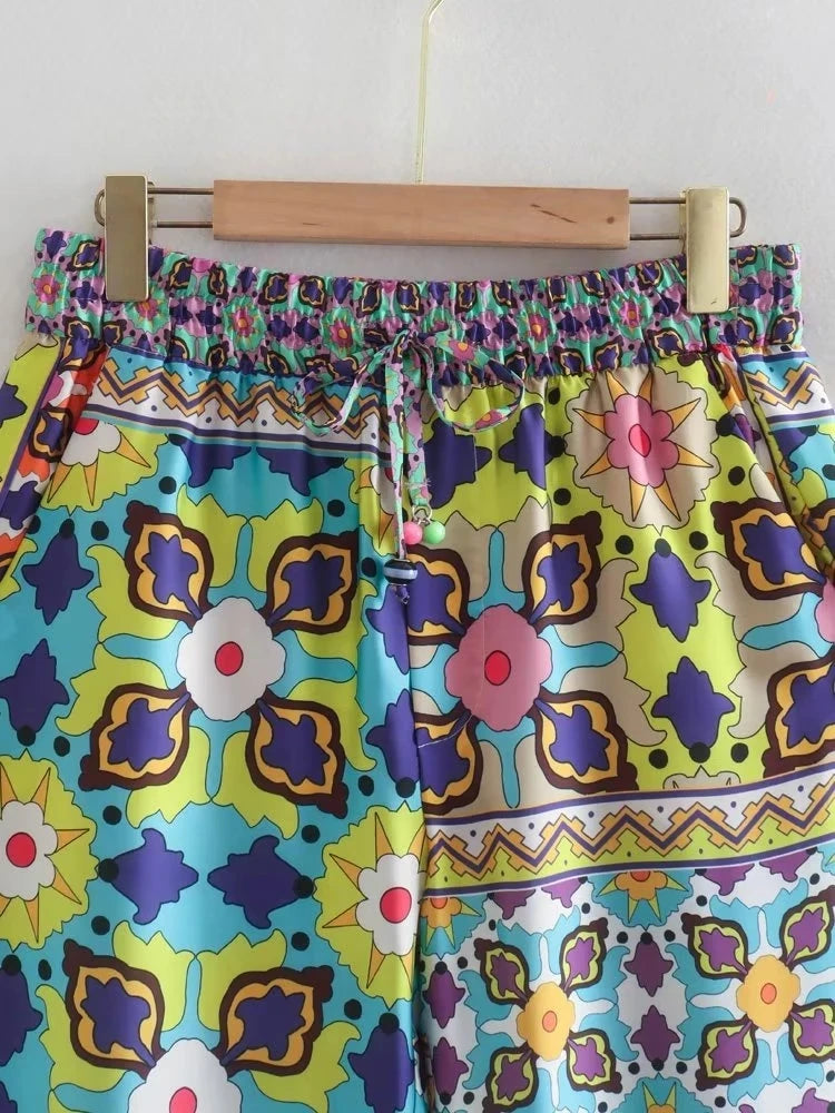 This comfy pants set is made of lightweight polyester and features a stylish printed pattern. Perfect for staying cozy and looking fashionable at the same time.