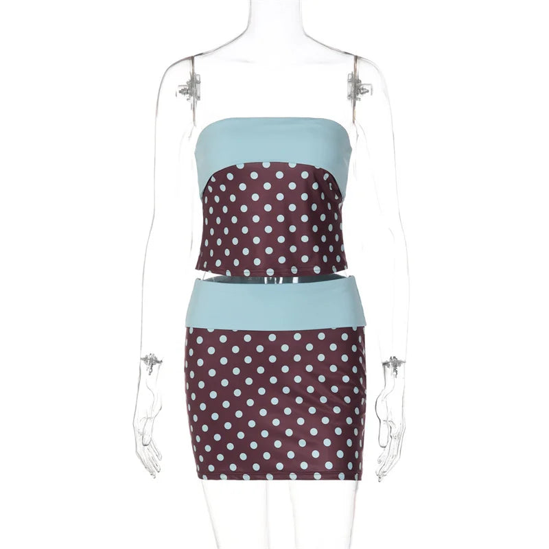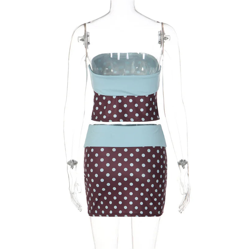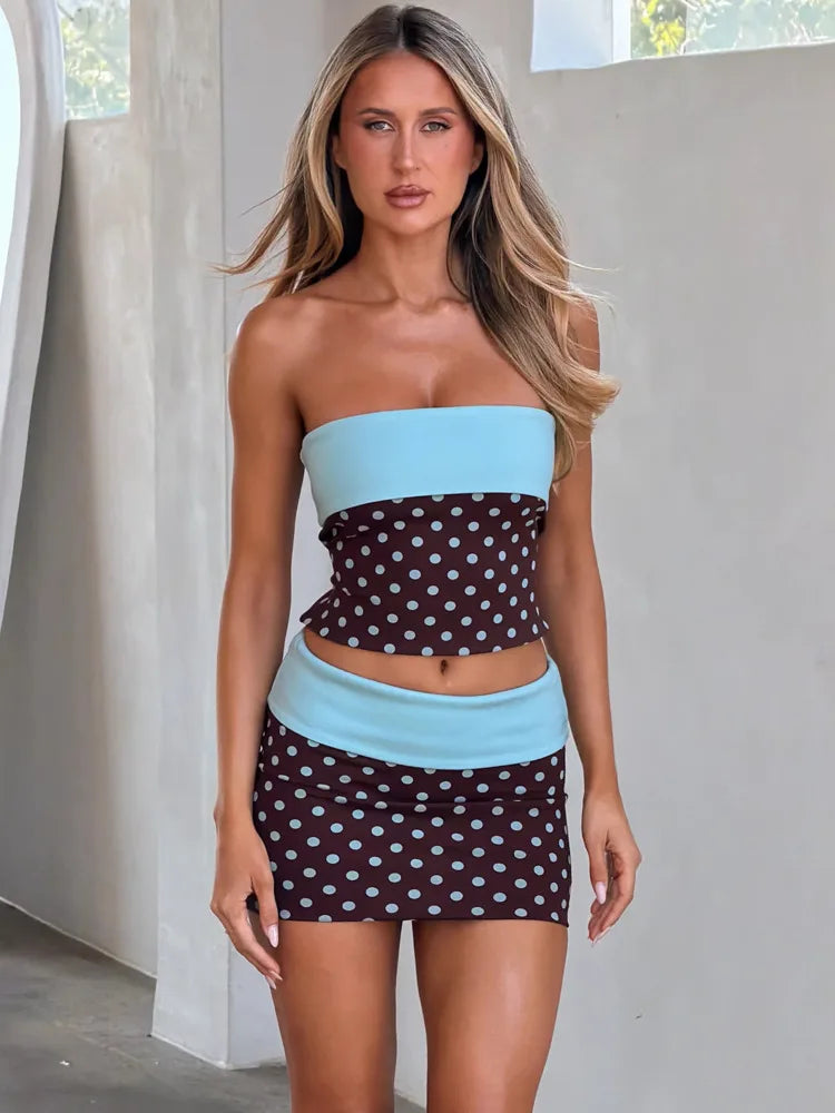 Polka Dot Strapless Skirt Set