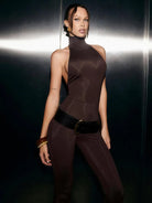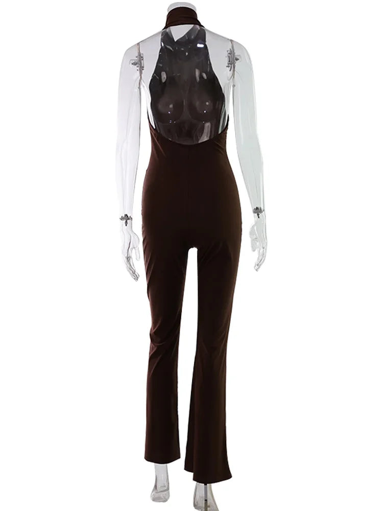 Make a fearless entrance in this backless jumpsuit that celebrates your confidence. The sleek polyester and elastane fabric hugs your silhouette while offering comfortable stretch for all-night wear. With its daring open-back design, this piece strips away pretense and embraces pure allure. Ideal for those moments when you want to turn every head in the room and leave a lasting impression.
