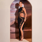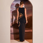 Experience elegance and allure in our Blossom In The Dark Maxi Dress. Featuring a stunning O-neckline and intricate hollow out detailing, this dress is perfect for any occasion. The ankle-length design, made from a luxurious blend of polyester and spandex, ensures a comfortable and flattering fit. Make a statement and turn heads in this must-have dress!