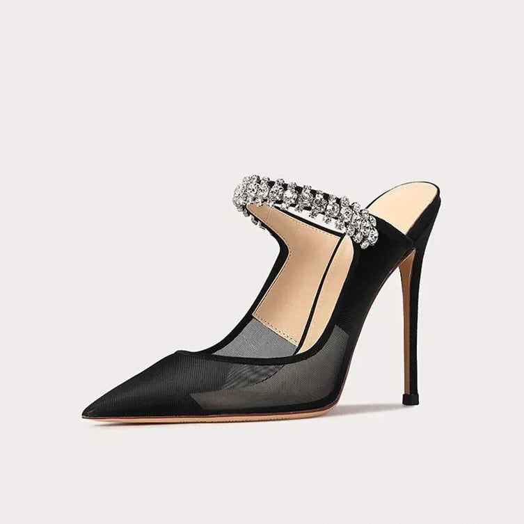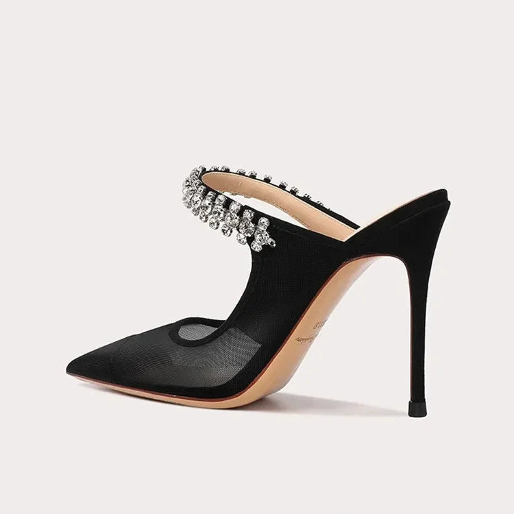 Elevate your style with Destiny's Charm Mules Shoes. These stunning shoes feature a breathable mesh upper and a slip-on closure for effortless style. With a comfortable high heel, you'll feel confident and chic all day long. Step into luxury with these must-have mules.