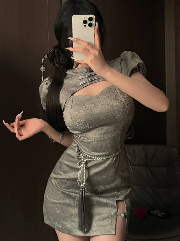 Unleash your inner enchantress with our mini dress. Crafted from luxurious polyester, this solid dress features delicate ruffles that add a touch of charm. Perfect for any occasion, this mini dress will have you looking effortlessly stylish.