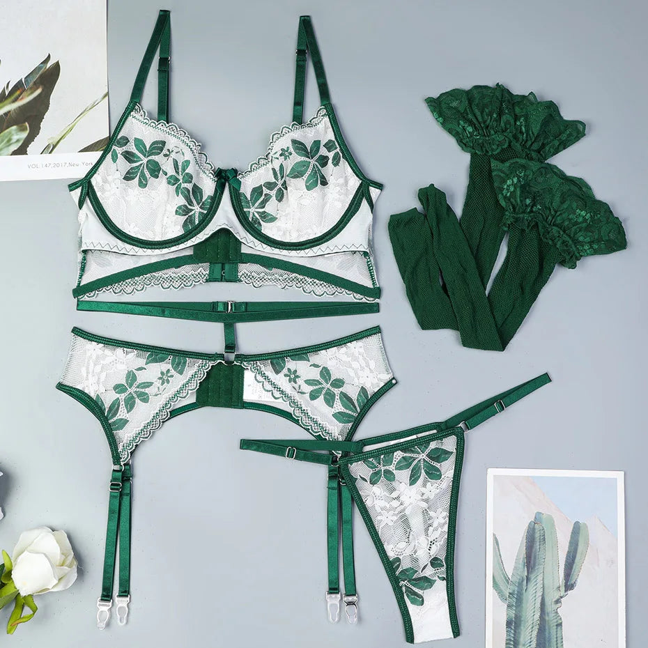 Experience the luxurious comfort and sensual allure of Passion's Secret Lingerie. Crafted with a blend of soft Polyester and flexible Spandex, this lingerie set will hug your curves and offer unmatched comfort. Adorned with a delicate floral pattern, it's the perfect combination of style and sensuality.