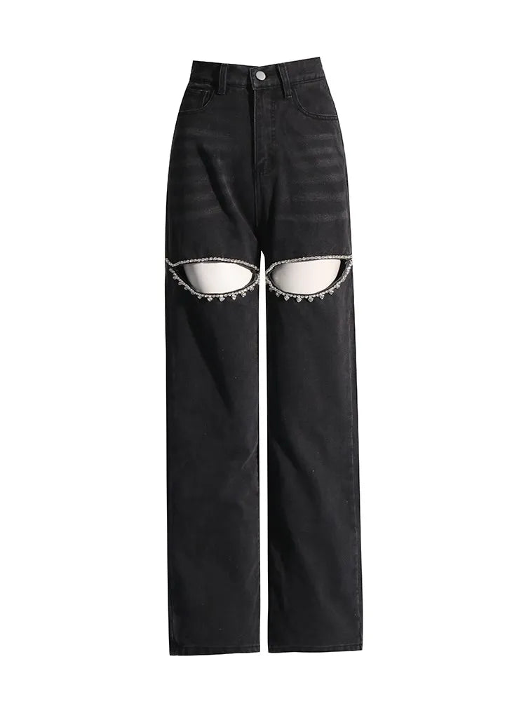 Command attention in the Throne-Born Elegance Jeans, where audacious design meets refined style. Intricate hollow-out detailing creates striking visual interest, while shimmering rhinestones catch the light with every move—perfect for those who refuse to blend in. Bold, unapologetic, and undeniably captivating, they're crafted for rebels who wear their confidence on their sleeve.