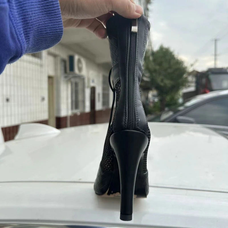 Indulge in your wildest fashion fantasies with our Ankle Boots! Featuring a dramatic super high heel and a stylish gladiator design, these boots will elevate any outfit. The breathable mesh upper and durable rubber outsole ensure comfort and stability. Embrace your daring side with the Wildest Fantasy Ankle Boots!