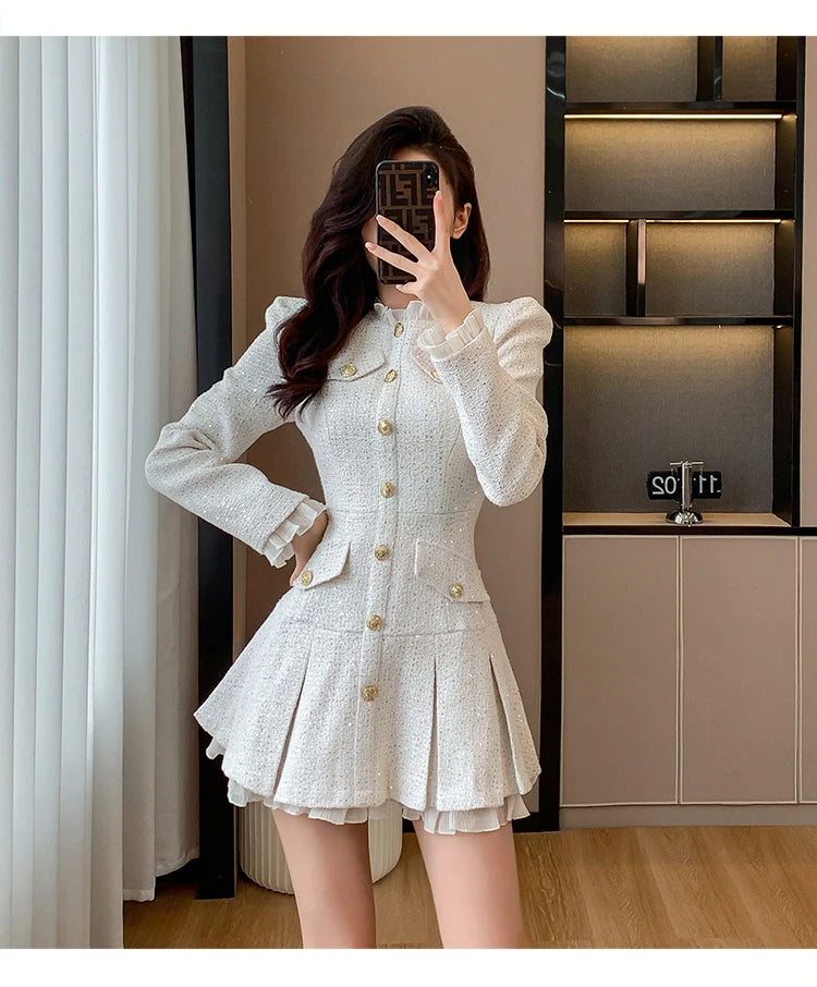 Flaunt your confidence in this mini dress! With its solid, patchwork design and flattering ruffle details, this mini dress is made of polyester for a comfortable yet stylish fit. Elevate your wardrobe and make a statement with this must-have dress.