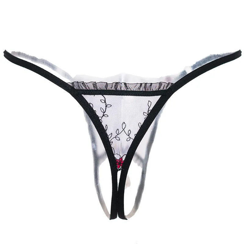 This g-string features a solid design crafted with a blend of spandex and polyester, finished with elegant lace detailing. It's sure to fit comfortably and flatter any figure.