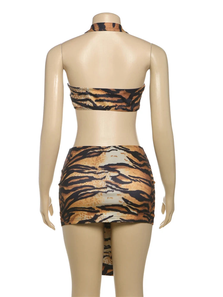 Elevate your style with our Breathe On Me Skirt Set! Made from a comfy blend of Spandex and Polyester, this versatile set features a halter collar, regular sleeves, and a fierce tiger pattern. Perfect for a bold and confident look that will keep you feeling comfortable all day long.