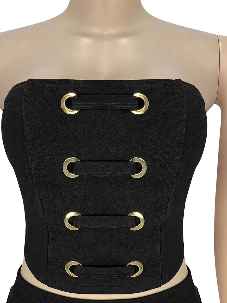 Turn heads with the Naughty Nectar Skirt Set, a daring duo of a sleek short top and matching skirt. This outfit plays with bold style and confident flair, perfect for making a statement at any night out. Embrace your edgy side and own every moment in this striking combination designed to showcase your fearless spirit.