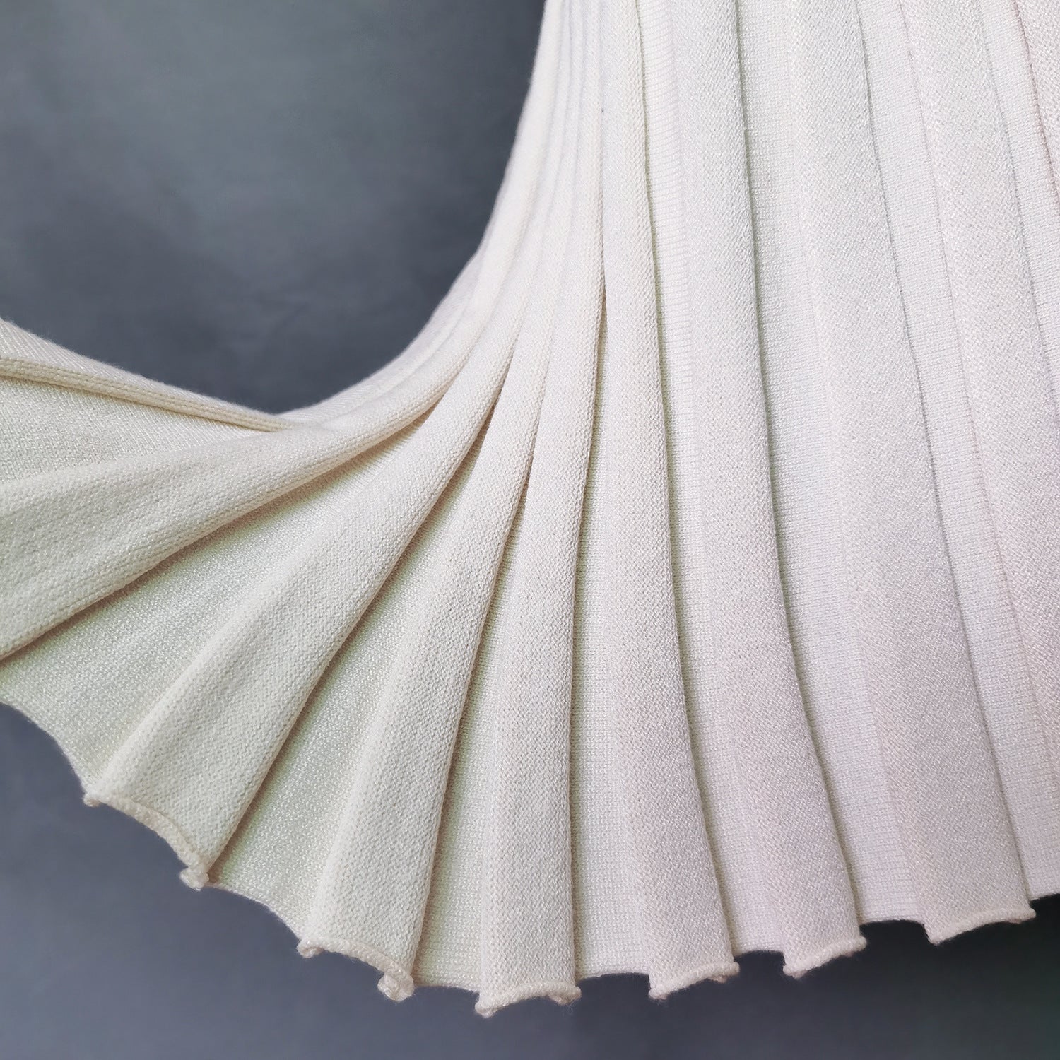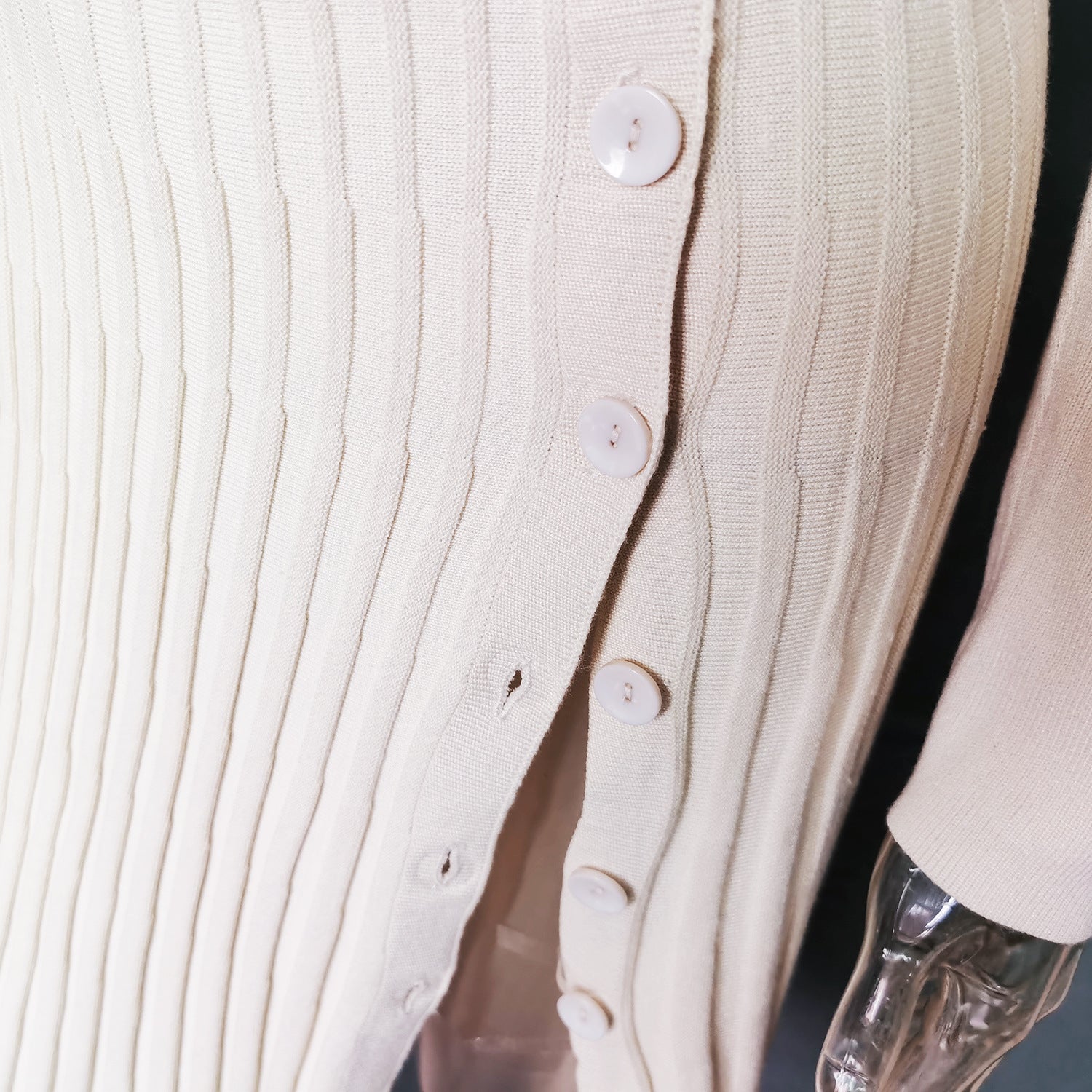 Knitted Long-Sleeved Crop Top and Pleated Midi Skirt Set Made From Cotton and Spandex Material with Buttoned High Slit Style