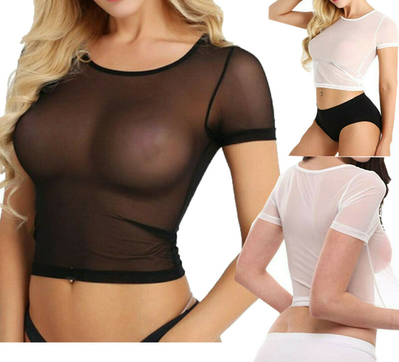 This see-through crop top from our collection of stylish women's tops will make a perfect addition to your wardrobe. Its minimalist design gives off a feminine and playful vibe. This shirt is a flattering style that is perfect for a casual night out or a night in with the girls.