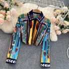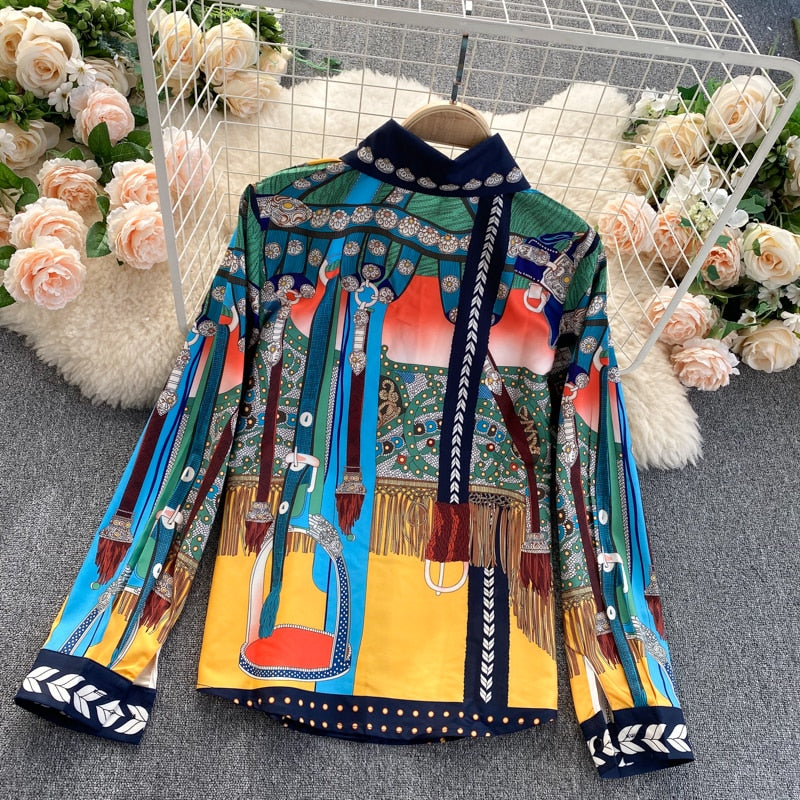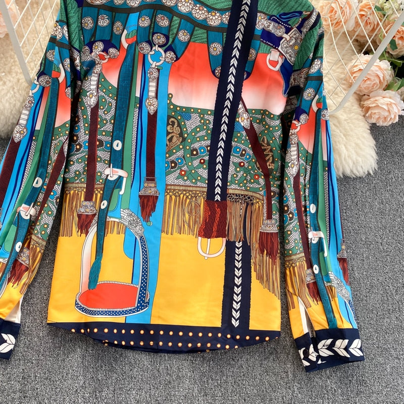 European Pattern Style Shirt with Turn-Down Collar and Button Closure