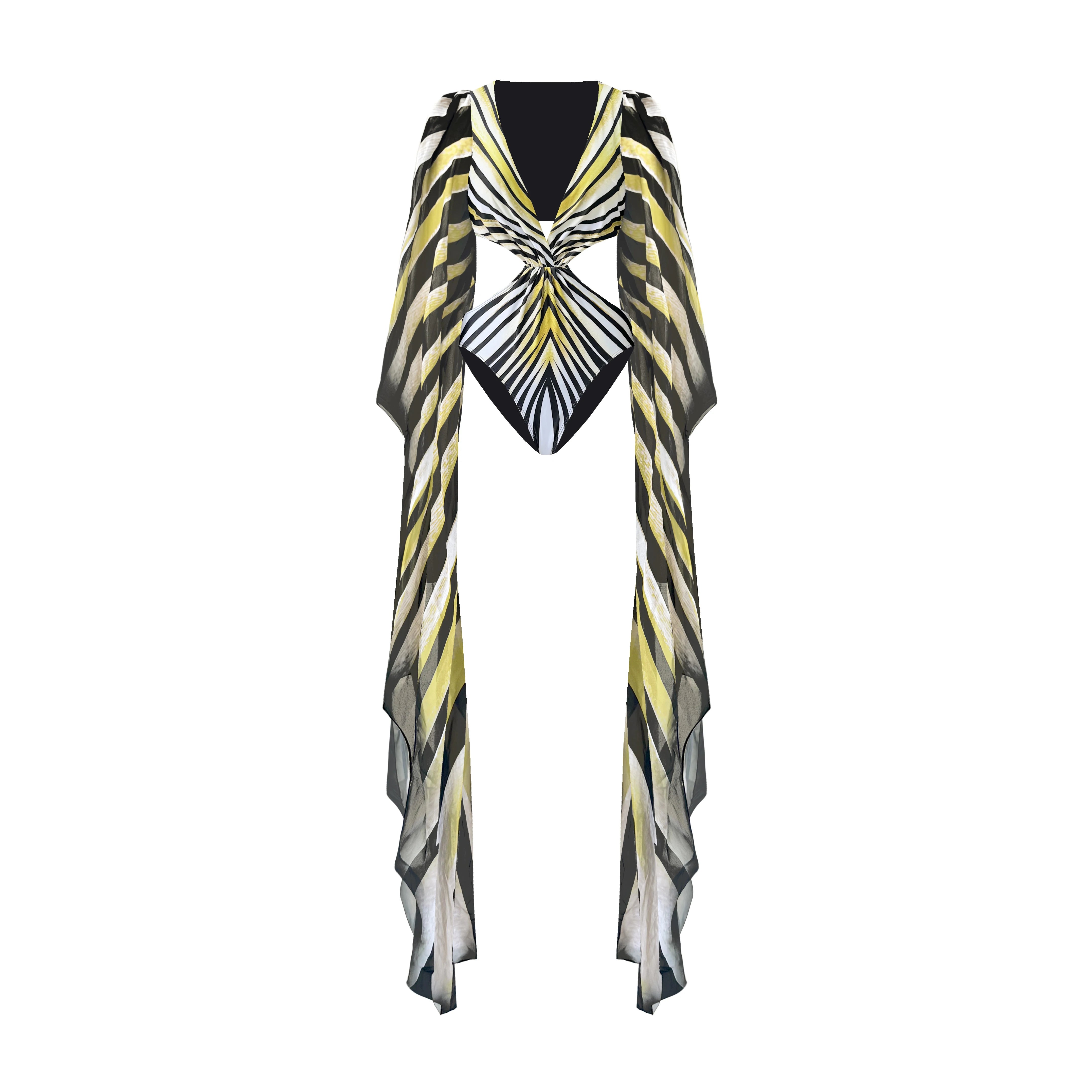 Striped Cut Out Flare Sleeve Monokini