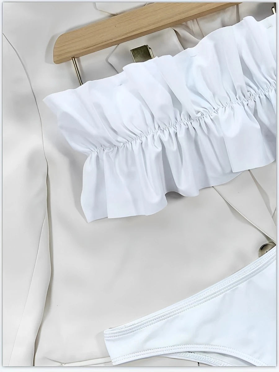 Unleash your beach babe vibes with our Pop The Top Bandeau Bikini! Made with a comfortable blend of spandex and polyester, it offers a wire-free support and features a solid pattern. Perfect for a beach style that's both trendy and comfortable. Get ready to turn heads and catch some waves!