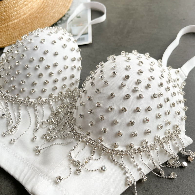 When you're looking for a sexy crop top to show off your curves, you need to try this women's crop top. Made from polyester, this crop top is available in black or white. The rhinestone and tassel decoration will give you a sexy edge that will make heads turn. The spaghetti straps provide a more comfortable fit and style.